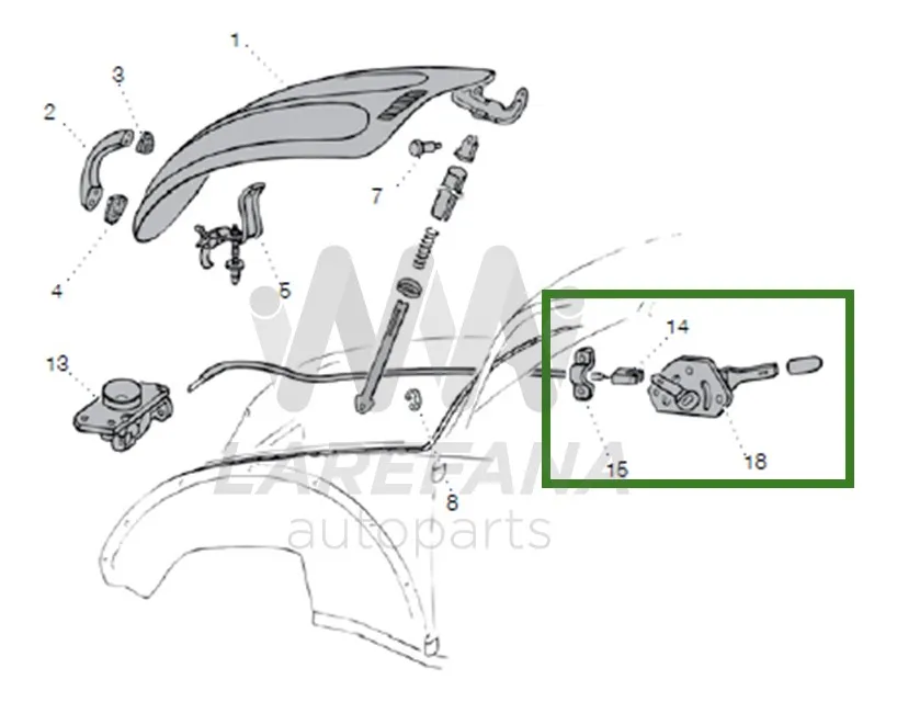 KIT DE PALANCA Y CHICOTE DE APERTURA DE COFRE PARA VW SEDAN VOCHO
